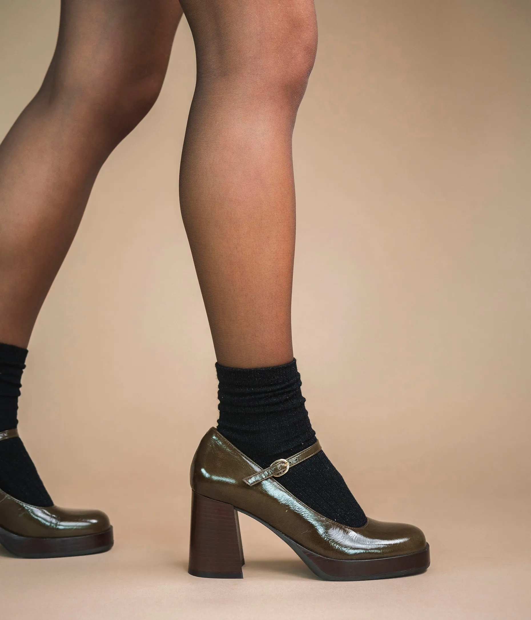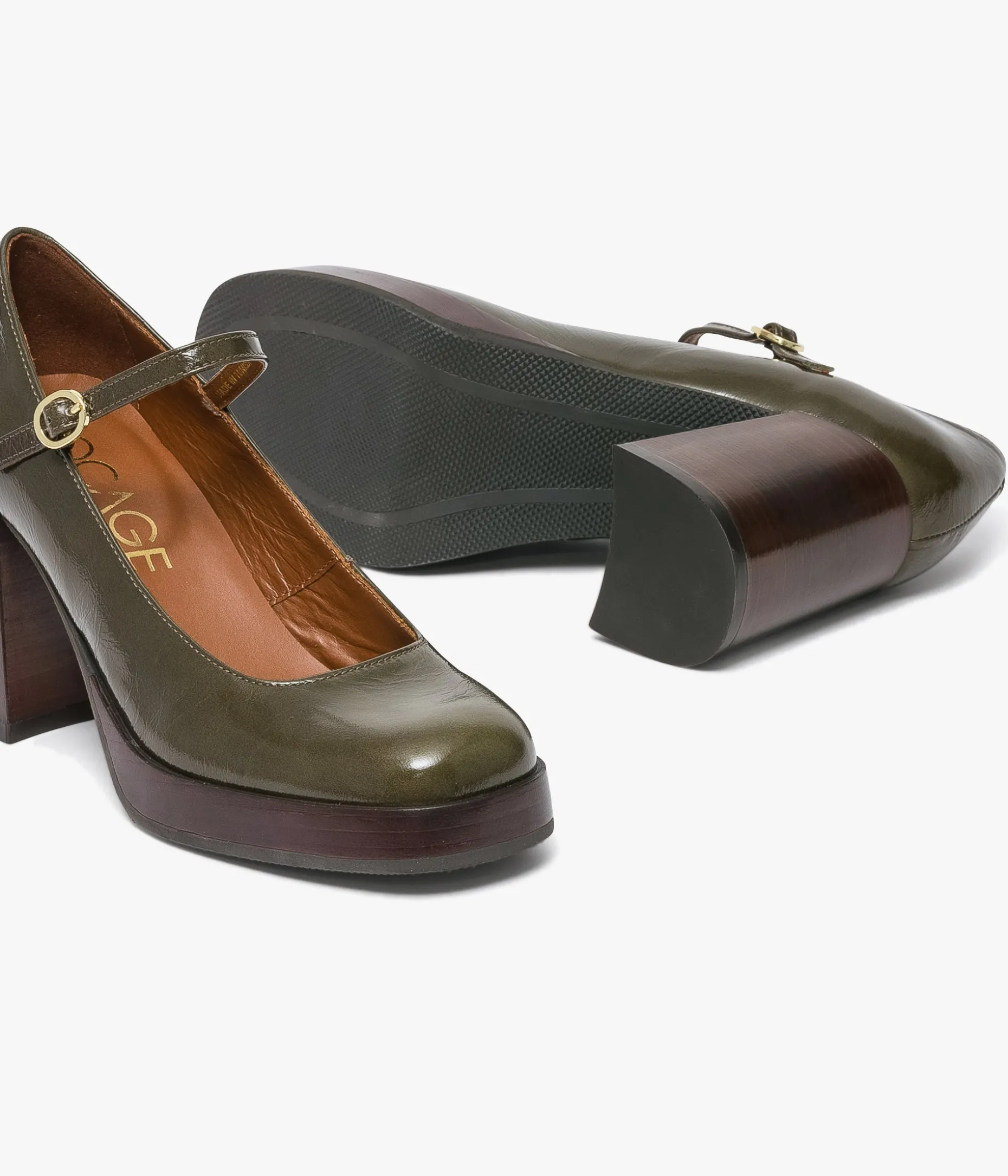 Un escarpin en cuir vert fabriqué avec le plus grand soin. Un bébé élégant aux accents rétro avec son bout carré aux lignes arrondies et sa fine mariée fermée par une boucle dorée. Il repose sur une semelle plateforme souple et un talon évasé lamellé collé. Une chaussure entièrement doublée en cuir avec semelle intérieure en cuir moussée. Son cuir vintage est un cuir d'aspect avoir vieilli qui se patine avec le temps, un cuir brillant qui affiche un aspect plus ou moins froissé, dont la tonalité peut varier, et qui peut un aspect « déjà porté ». Elastique d'aisance sous la boucle. Semelle 2 cm. Elastique d'aisance sous la boucle.