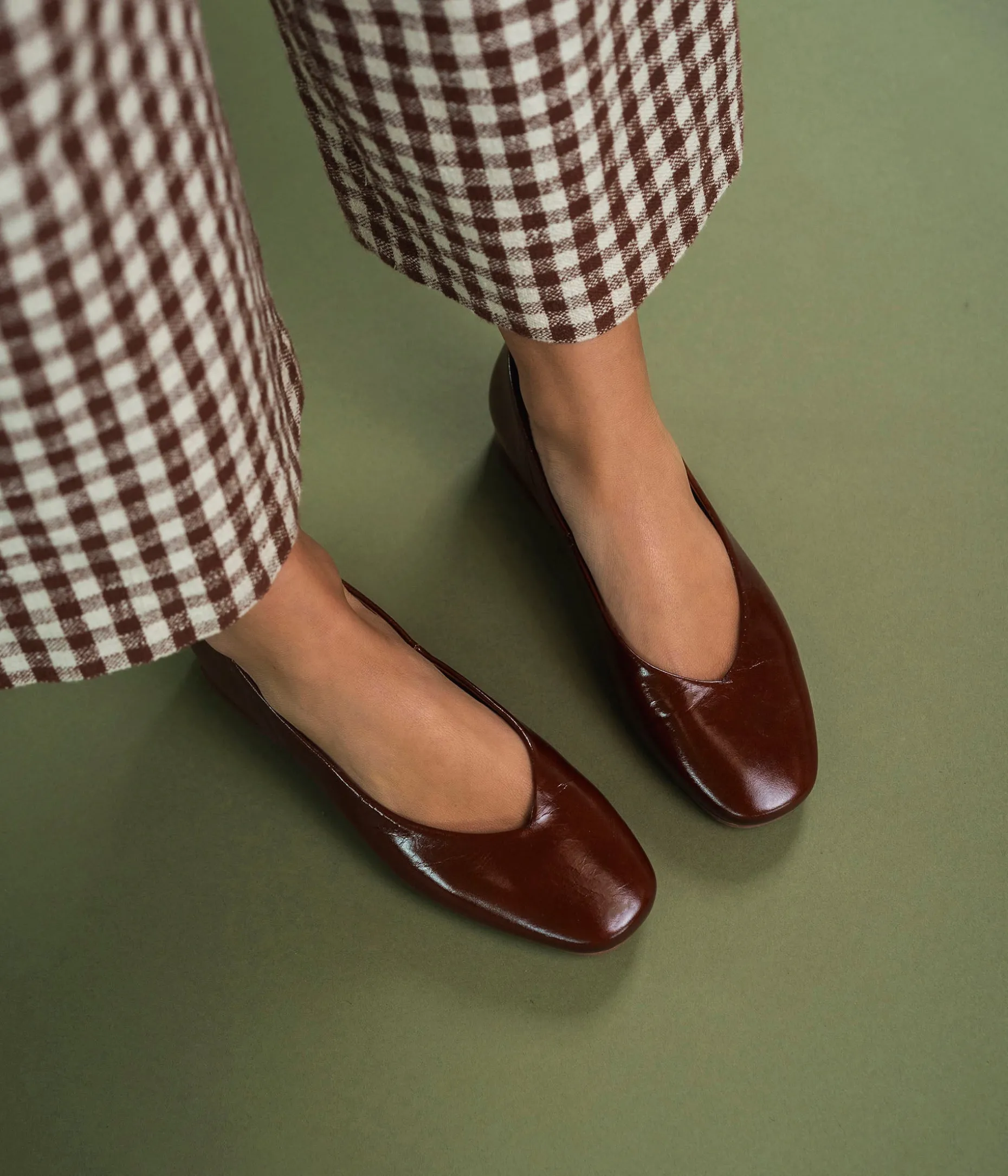 Une ballerine en cuir cognac fabriquée avec soin au Portugal. Elle affiche une allure contemporaine avec son bout carré et son décolleté en V qui dévoile largement le dessus du pied. Elle repose sur une semelle fine et un petit talon enrobé. Une chaussure entièrement doublée cuir avec semelle intérieure cuir dotée d'une fine mousse. Son cuir vintage est un cuir d'aspect vieilli qui se patine avec le temps, un cuir brillant qui affiche un aspect plus ou moins froissé, dont la tonalité peut varier, et qui peut avoir un aspect « déjà porté ».