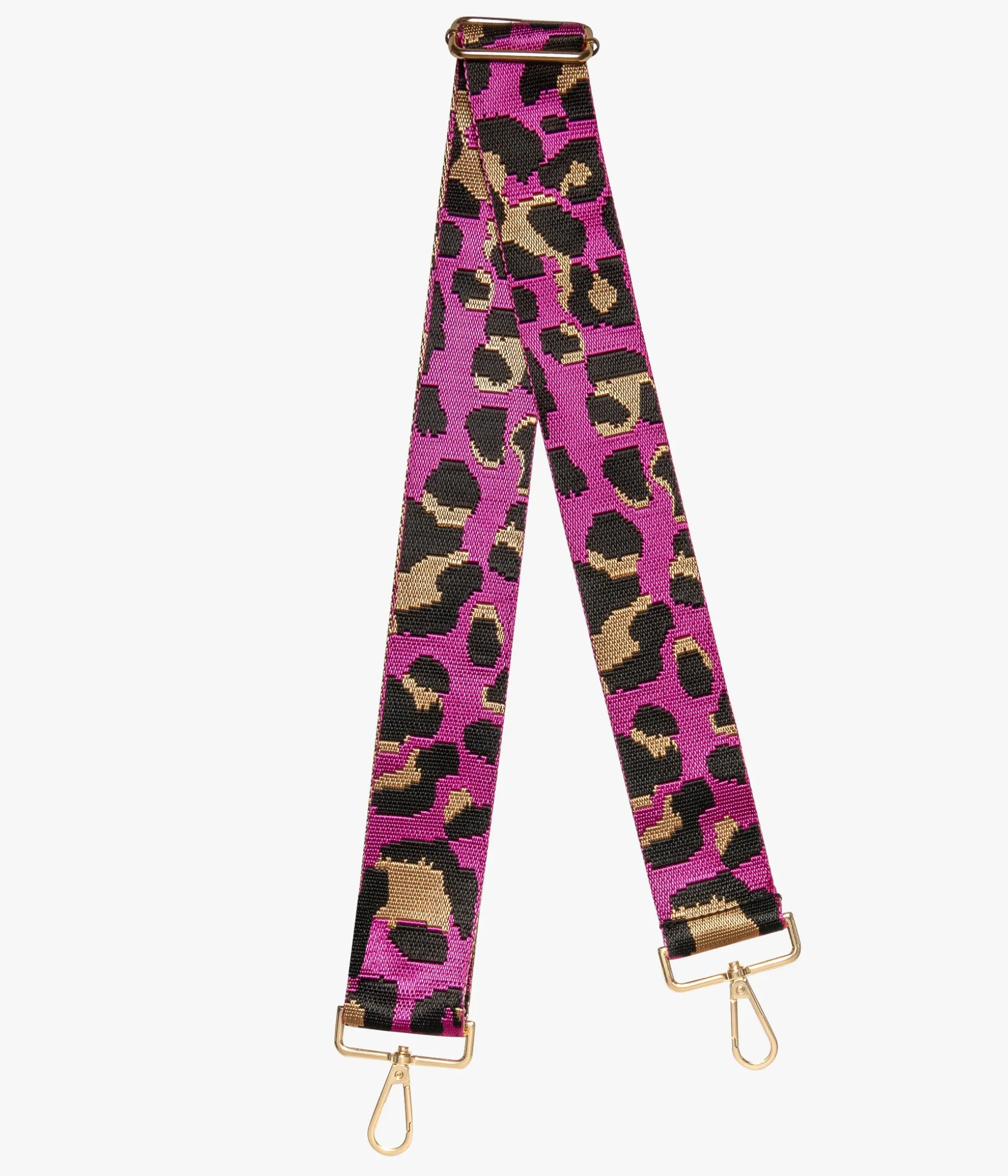 Cette bandoulière de sac fuchsia à motifs léopard, apportera une touche animale et glamour à vos sacs. Confectionnée dans une toile ultra résistante, elle se fixe grâce à des mousquetons dorés sur tous vos accessoires de maroquinerie, depuis le sac à main jusqu’à la pochette d’ordinateur. Bandoulière ajustable en longueur. Largeur 5 cm. Longueur max : 124 cm.