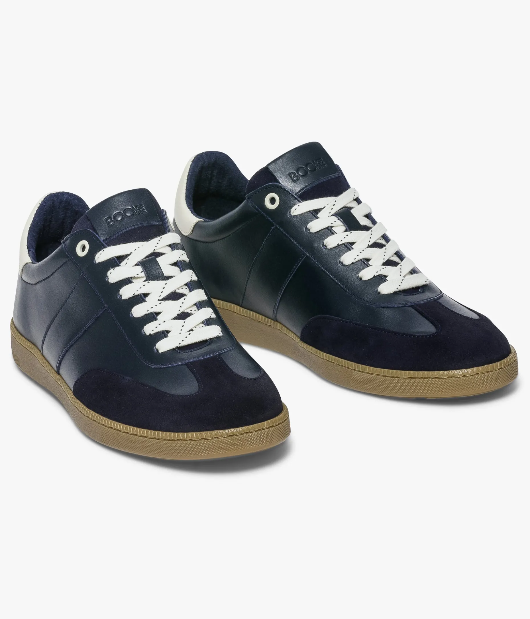 Une basket marine en cuir lisse fabriquée avec soin dans notre atelier au Portugal. Une chaussure esprit sportif agrémentée d’empiècements en cuir velours ton sur ton et dynamisée par une touche de cuir lisse blanc cassé au talon. Une basket entièrement doublée cuir avec semelle intérieure cuir amovible dotée d’une fine mousse. Elle repose sur une semelle en caoutchouc miel. Cette paire bénéficie d’un cousu latéral qui consiste à relier la tige et la semelle. Cette technique apporte une réelle robustesse et souplesse au produit.