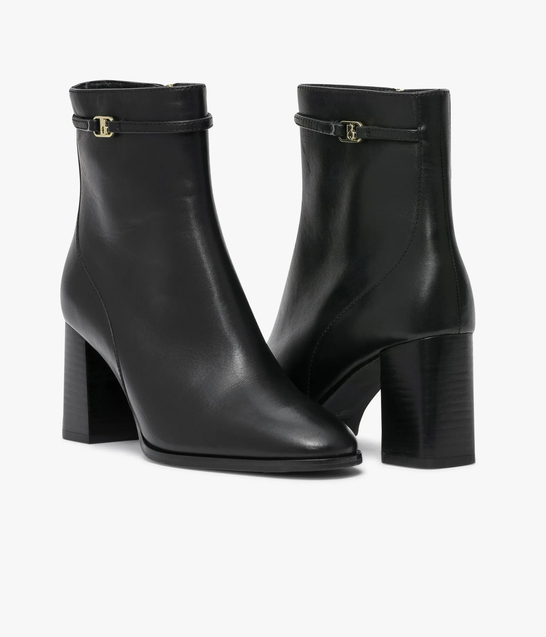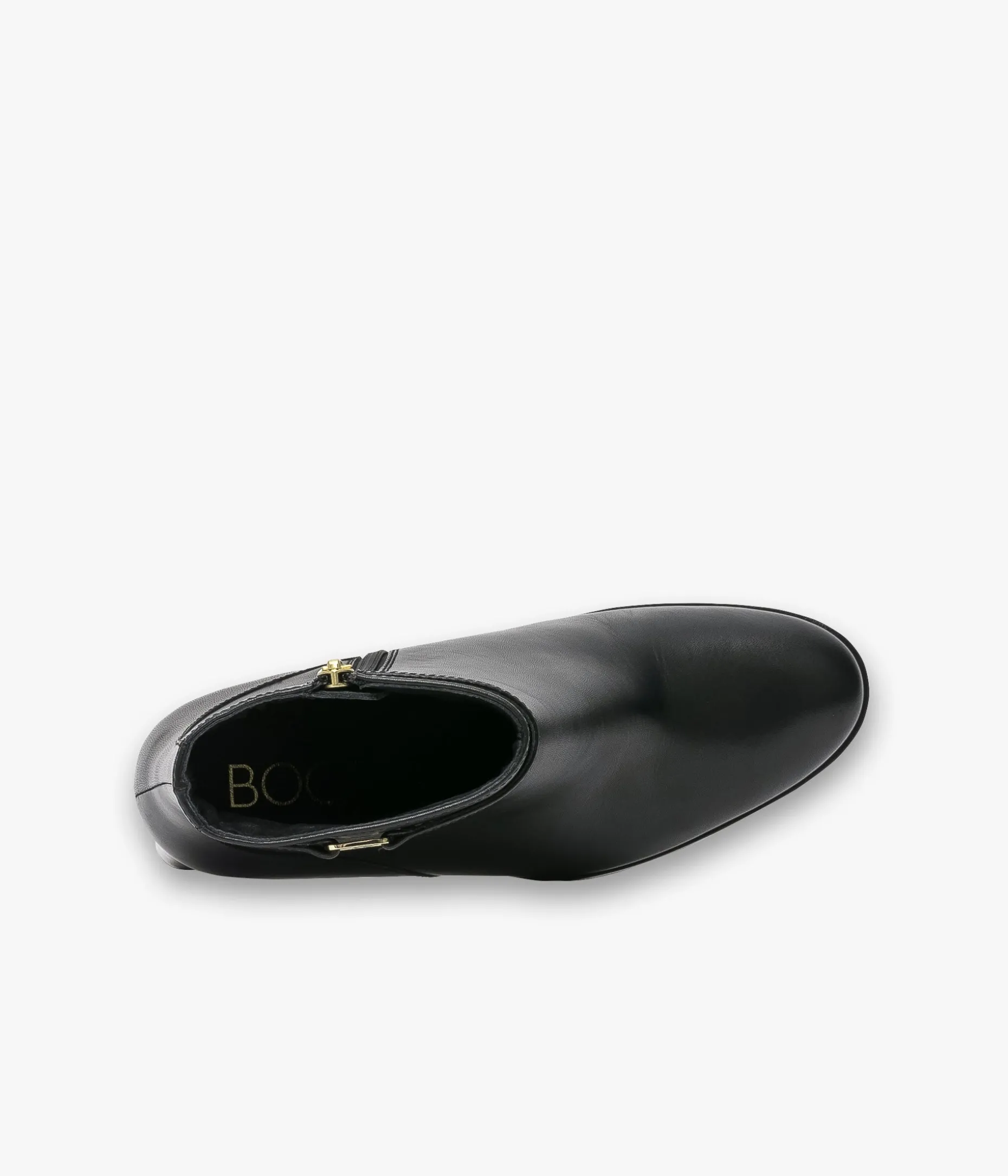 Ce boots en cuir noir fabriqué avec le plus grand soin s’impose comme le nouvel intemporel chic. Ce modèle ultra féminin avec bout amande et ligne effilée est souligné par un empiècement profilé au talon qui élance la silhouette. Un élégant logo en métal doré, fixé sur une fine bride de cuir, s’affiche comme un bijou autour de la cheville. Un boots entièrement doublé cuir avec semelle intérieure cuir moussée. Notre technologie Bocage Innovation vous garantit un bien-être inégalé. La semelle dissimule des élastiques qui permettent à votre chaussure de s’adapter à votre pied. Fermeture par zip intérieur.