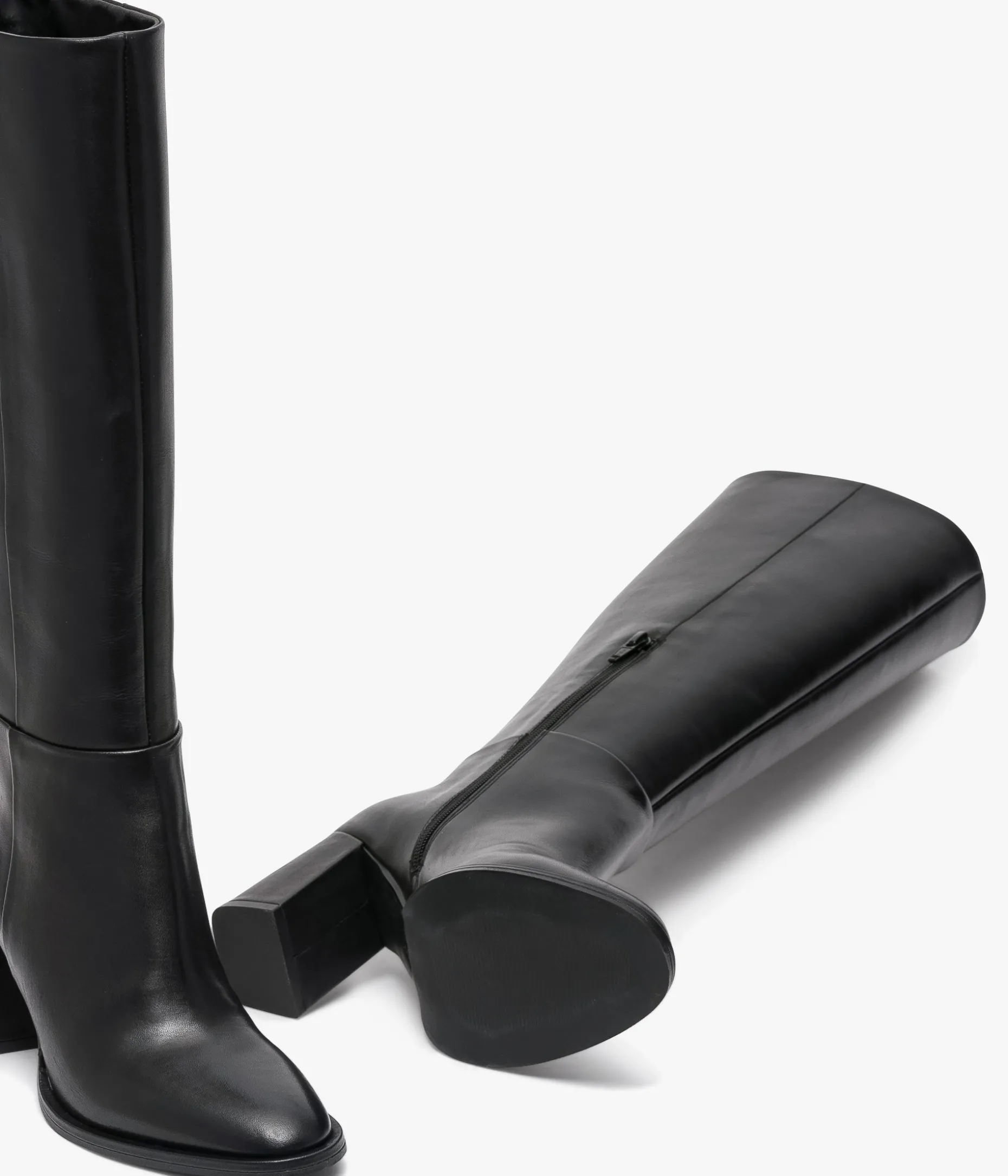 Une botte en cuir lisse noir fabriquée avec le plus grand soin. Elégante avec sa ligne effilée et son bout amande, elle se distingue par sa fine semelle avec trépointe cuir débordante et son talon haut. Dotée d’une tige galbée et d’un zip au niveau de la cheville, elle s’enfile facilement. Une botte intemporelle entièrement doublée cuir avec semelle intérieure cuir dotée d’une fine mousse.