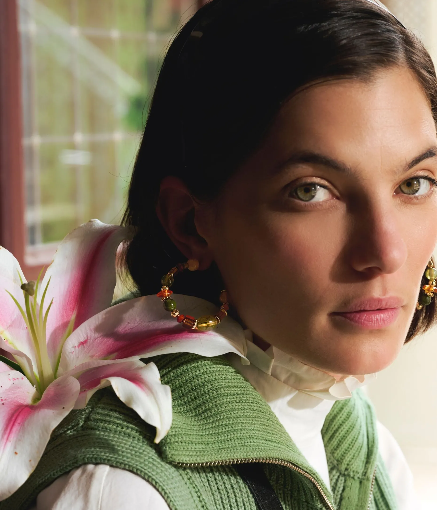 Une jolie paire de créoles multicolores inspirée du style baroque. Ces boucles d’oreilles sont composées de perles en résine et métal mixant le vert, l’ambre et le doré. Elles possèdent une tige en acier inoxydable et se ferment grâce à un fermoir papillon. Bijoux pour oreilles percées. Elles peuvent s’accorder aux bracelets Adela. Diamètre : 4 cm.