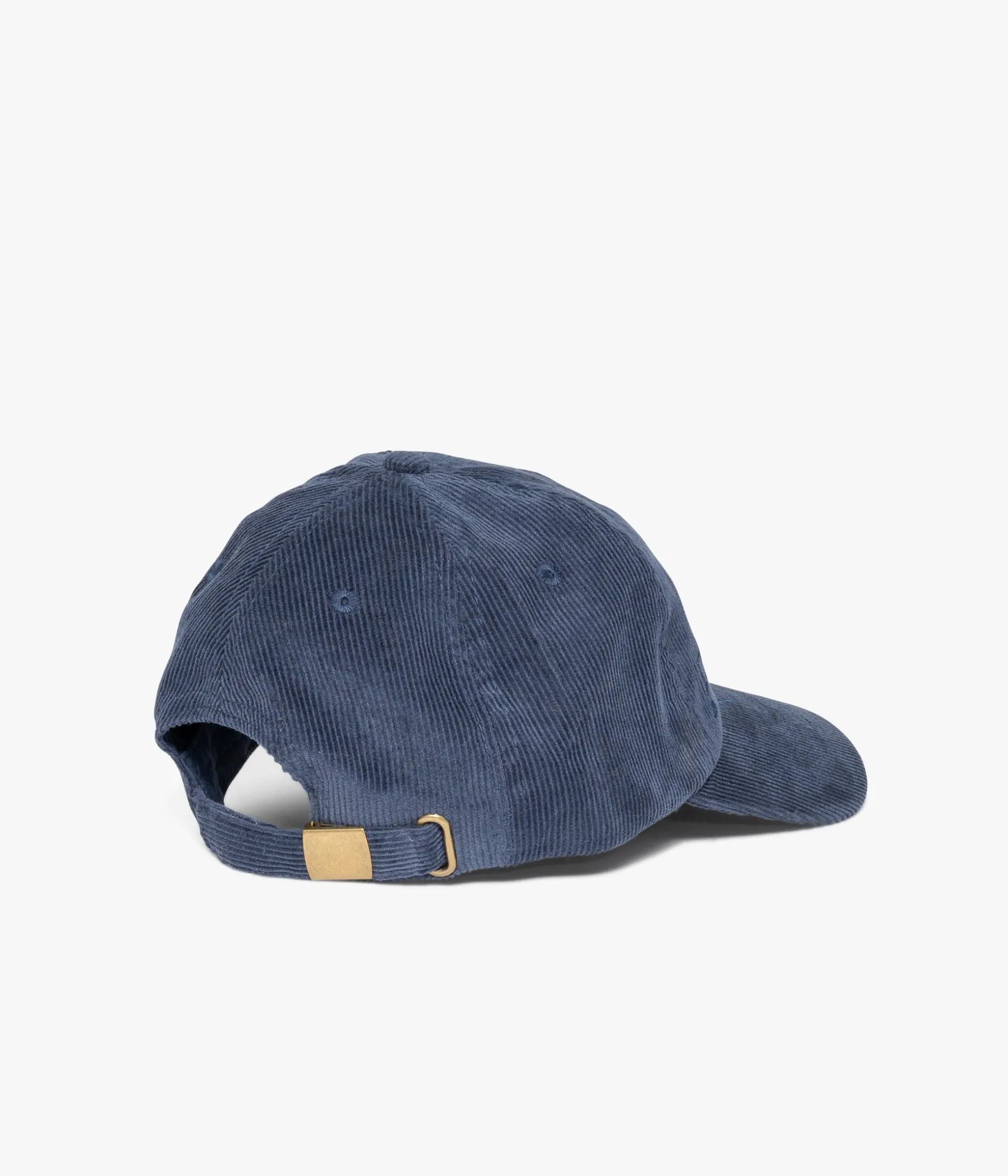 Une casquette bleue en velours côtelé idéale pour accompagner les looks de l'hiver en toute décontraction. Cette casquette homme arbore un logo brodé sur le côté, en ton sur ton. Elle possède des œillets brodés et s'ajuste à chaque morphologie à l'aide d'une bride avec boucle en métal vieilli. Bande de propreté rembourrée à l'intérieur.