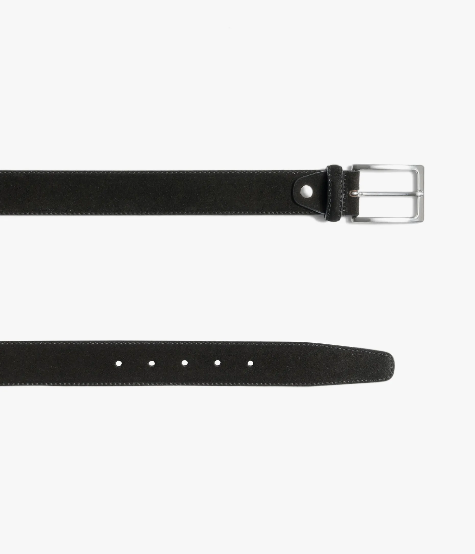Une ceinture noire avec son dessus en cuir velours. Elle se ferme par une boucle à ardillon rectangle en métal brossé et possède un passant en cuir. Largeur 3.5 cm. Si la longueur ne vous convient pas, vous pouvez la réajuster vous même. Pour cela, munissez-vous d'un tournevis adapté et retirez la vis à l'arrière de la boucle. Coupez avec un cutteur la longueur que vous souhaitez retirer. Prenez l'ancienne pièce comme gabarit pour marquer la position de la vis. Faites une marque puis trouez avec une pince poinçon. Enfin, vous pouvez remettre la boucle sur la ceinture ainsi que la vis.
