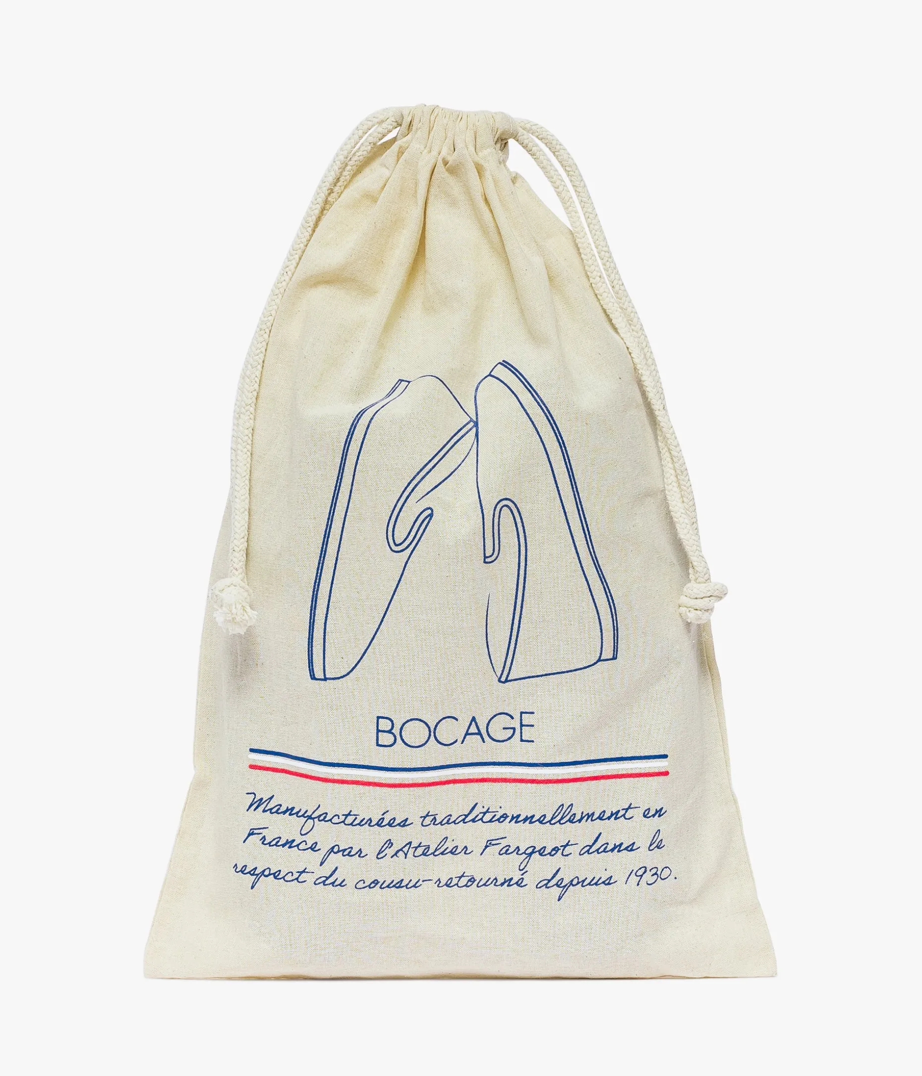 Un chausson bleu à carreaux, qui s’inspire de la charentaise avec sa forme enveloppante et son intérieur beige imitation laine. Ce chausson possède de jolies finitions biais bleu sur le col et une semelle en caoutchouc enrobée de feutrine. Ce chausson est manufacturé traditionnellement en France par l’Atelier Fargeot dans le respect du cousu-retourné depuis 1930. Cette paire de chaussons est livrée dans une pochette en coton avec liens coulissants, certifiée Oeko-Tex.