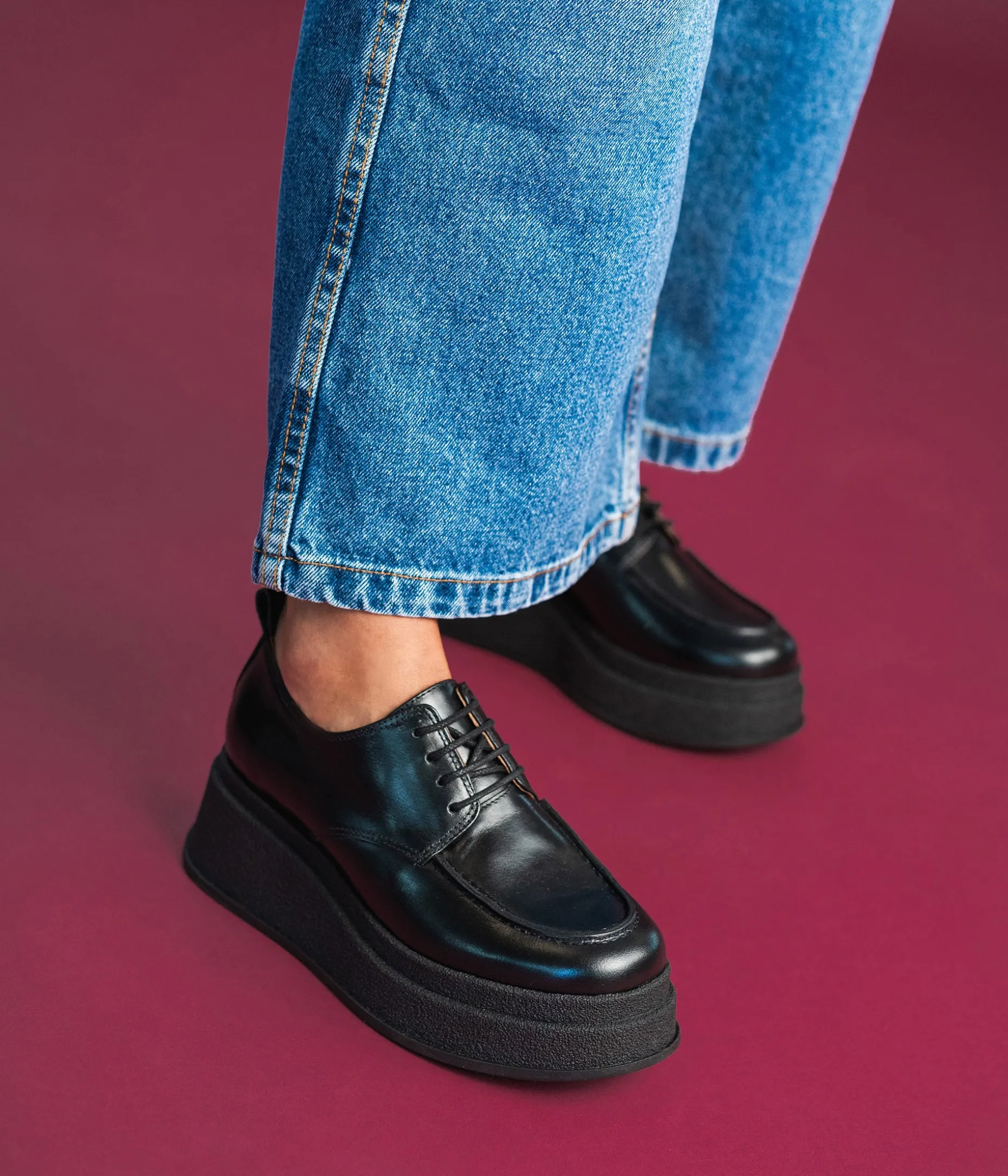 Un derby en cuir lisse noir fabriqué avec soin dans notre atelier au Portugal. Un classique du vestiaire féminin rehaussé par une semelle plateau en caoutchouc pour un look à la pointe de la tendance. Une chaussure entièrement doublée cuir avec semelle intérieure cuir dotée d’une fine mousse. Couture en relief sur le dessus. Tirette au talon facilitant le chaussant. Plateforme 4 cm.