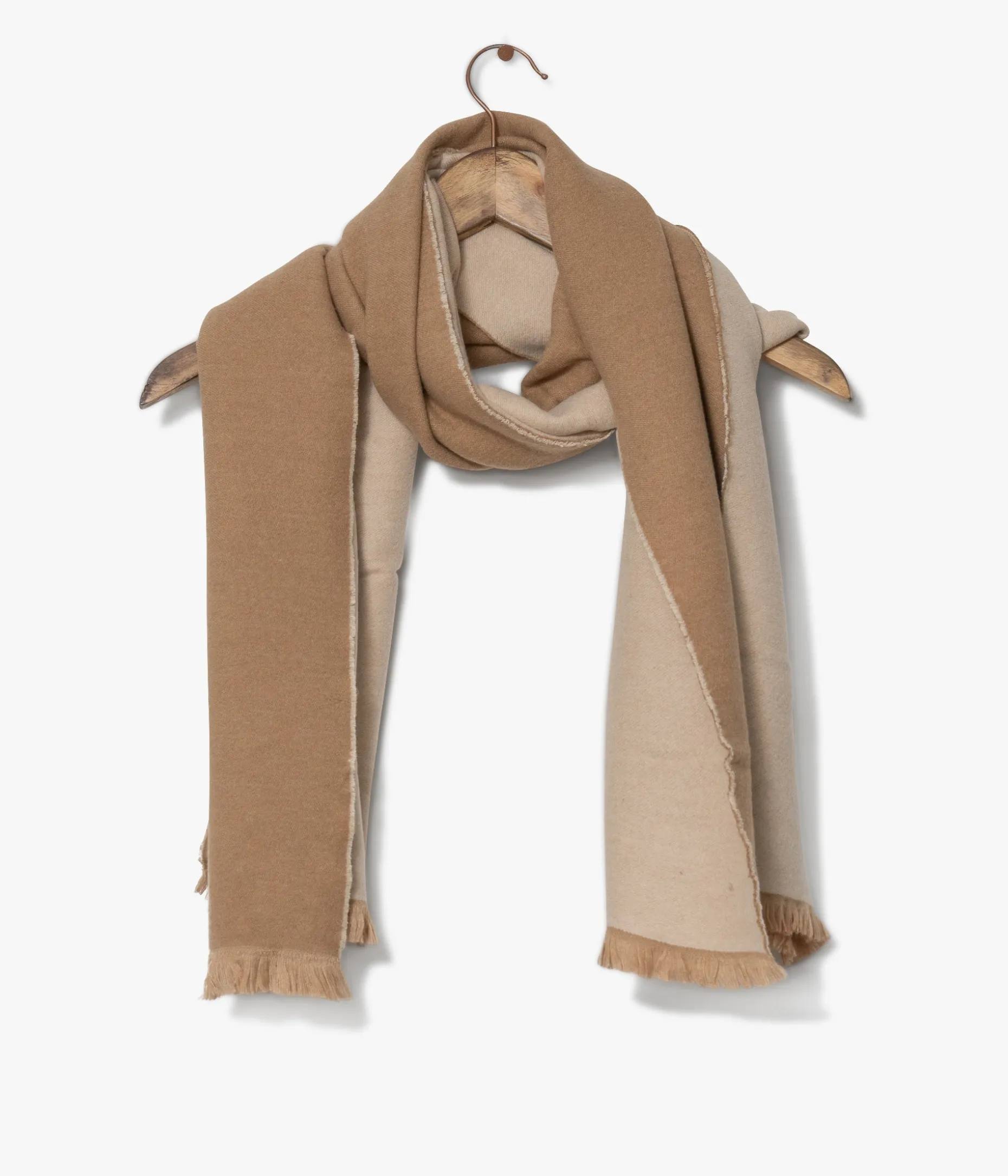 Une très jolie écharpe camel parfaite pour réchauffer l’ensemble des tenues masculines. Une écharpe bicolore avec intérieur beige, agrémentée de franges aux extrémités. Elle s’intègre dans tous les styles qu’ils soient chics ou casual. Dimensions : 60×185 cm.