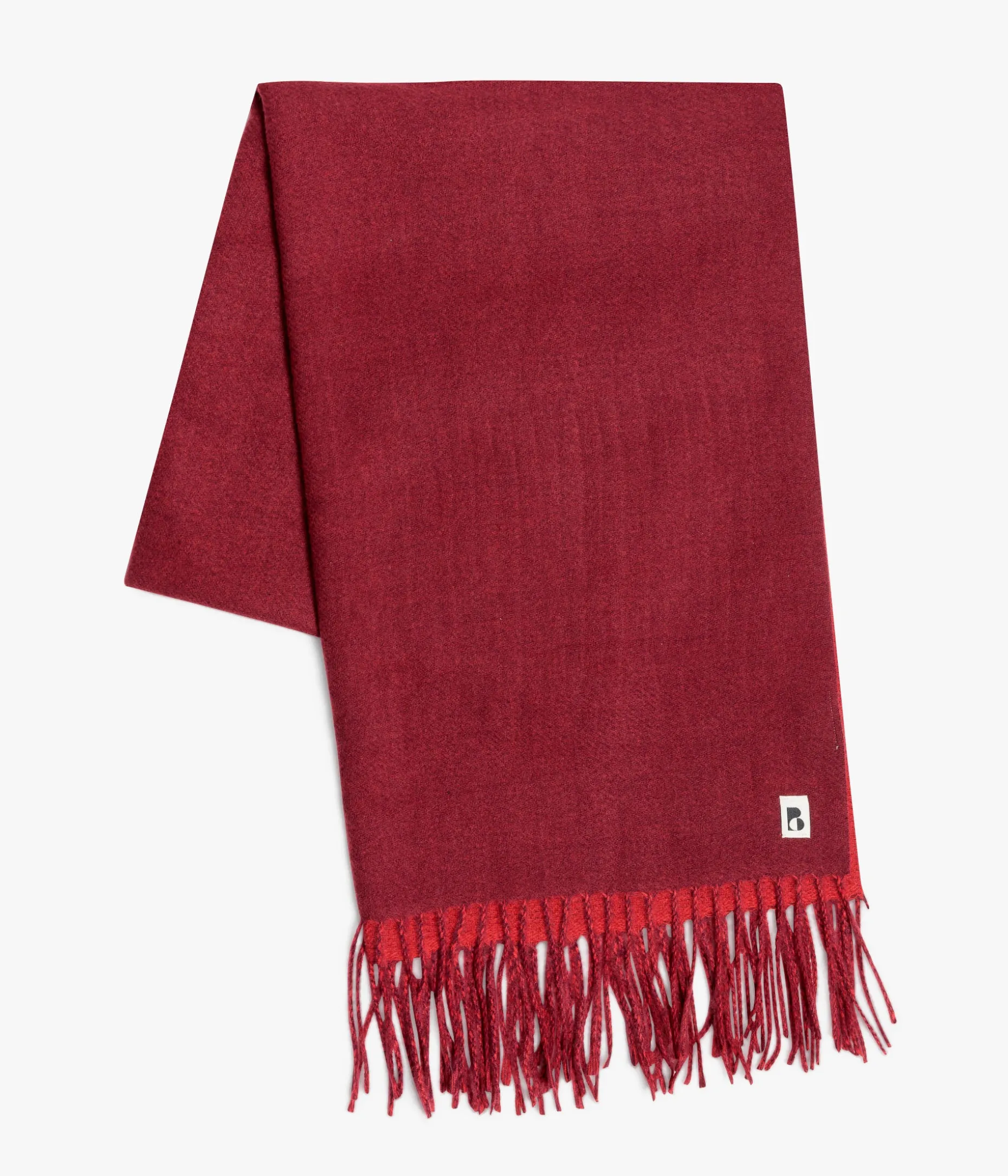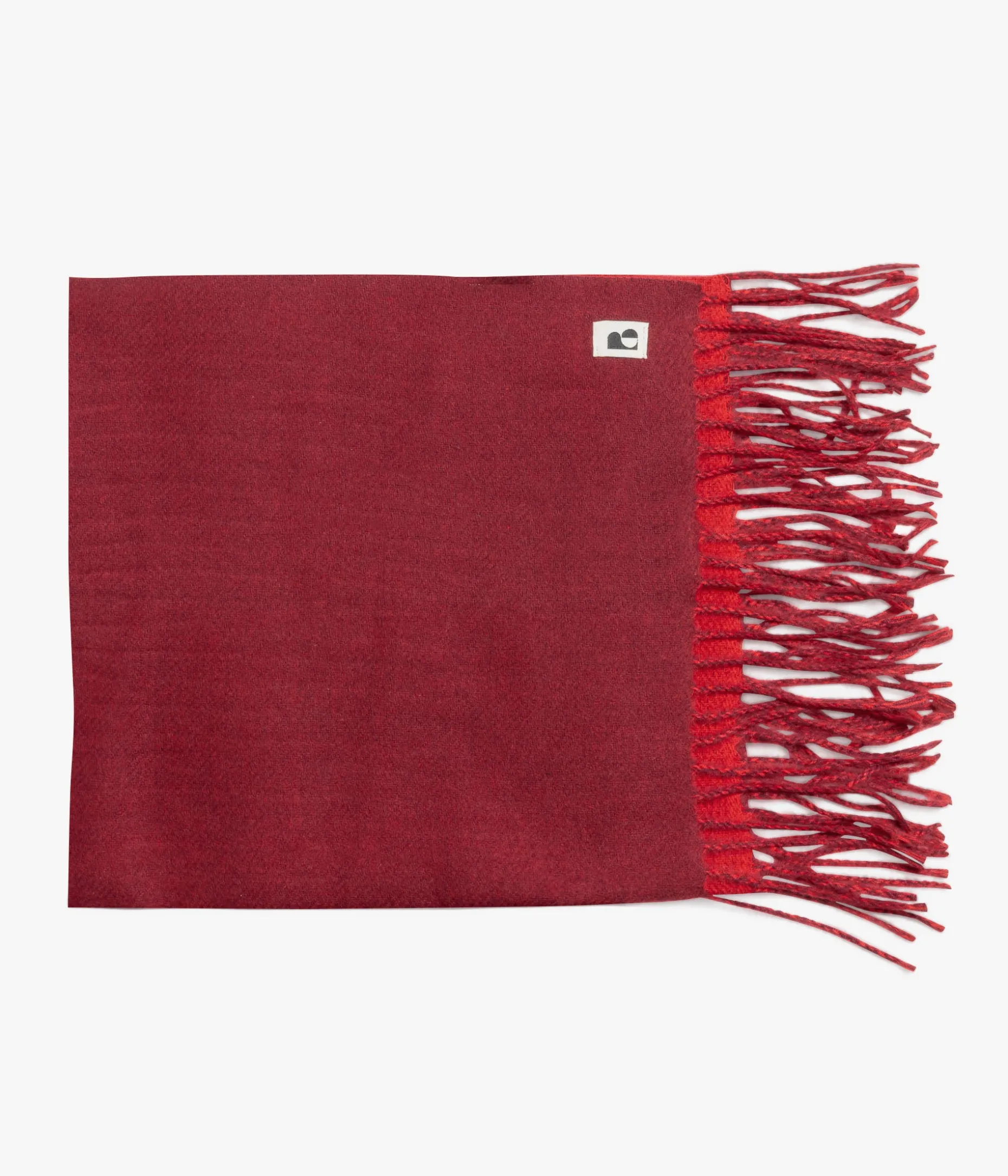 Cette sublime écharpe rouge séduit par ses deux faces, de nuance différente, permettant de jouer les contrastes. Enveloppante et réconfortante, cette écharpe réversible pour femme réchauffe toutes les tenues en ajoutant une touche de couleur lumineuse. Elle possède des finitions franges aux extrémités. Dimensions : 67×184 cm.