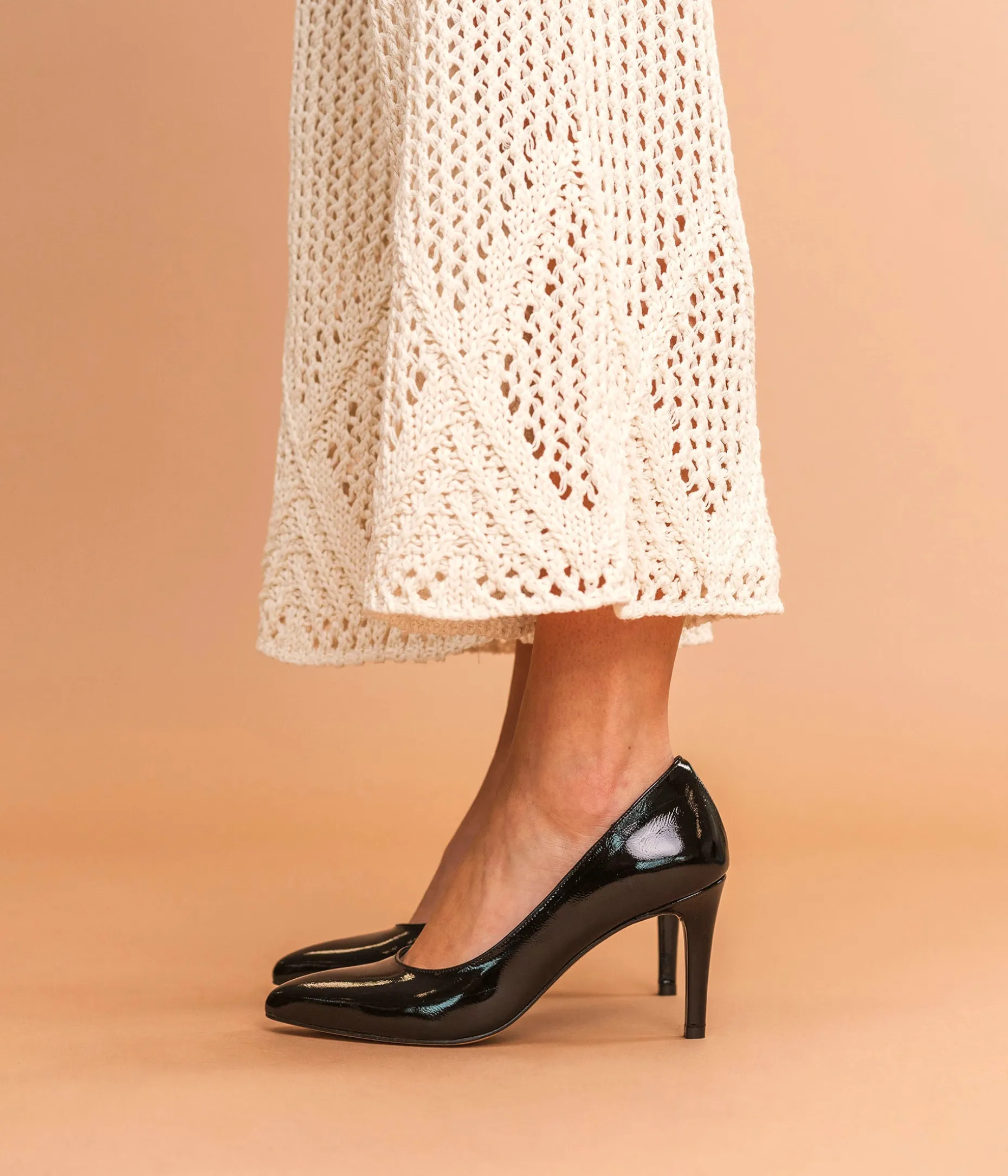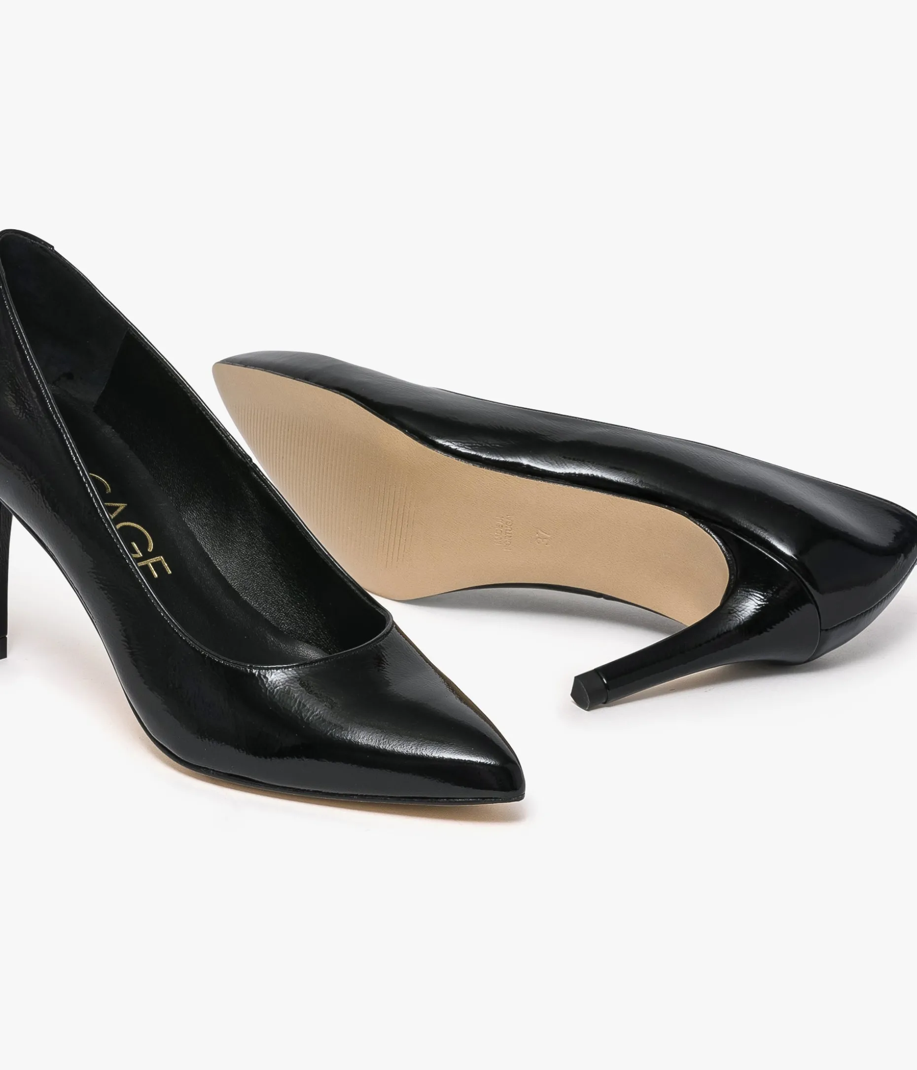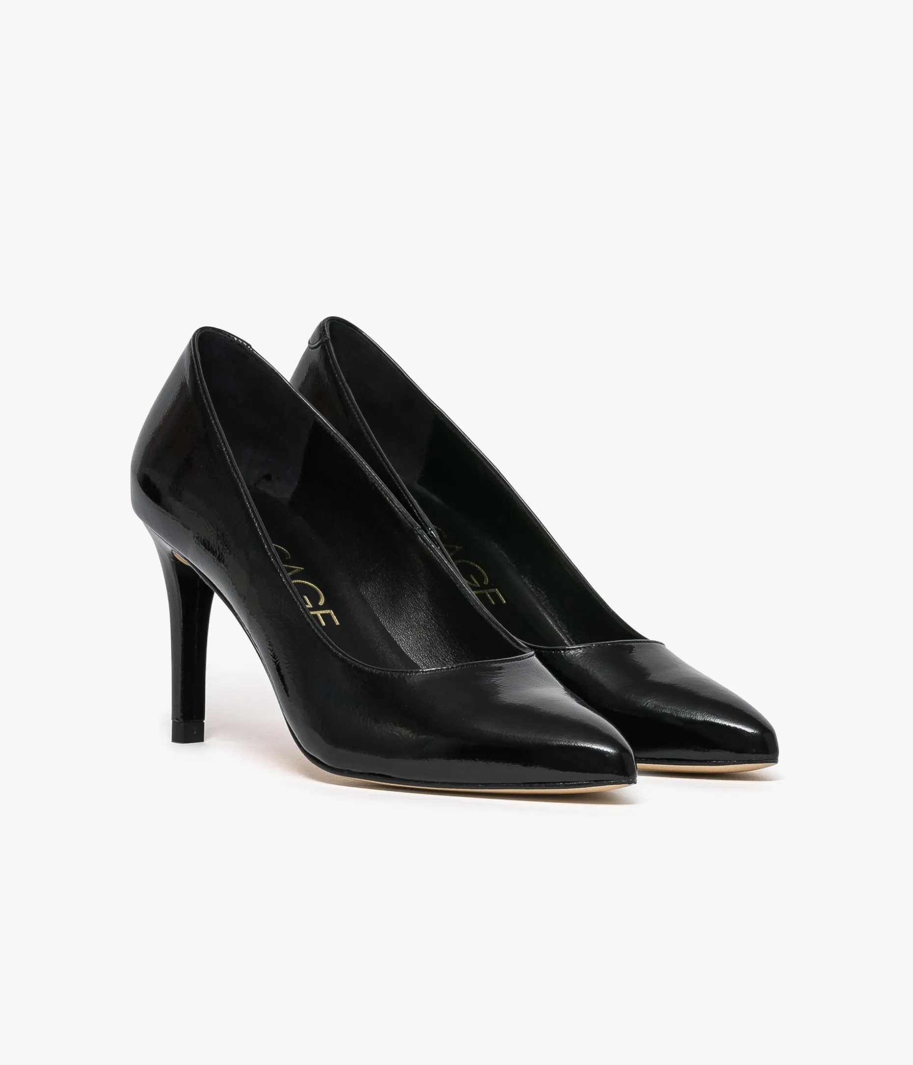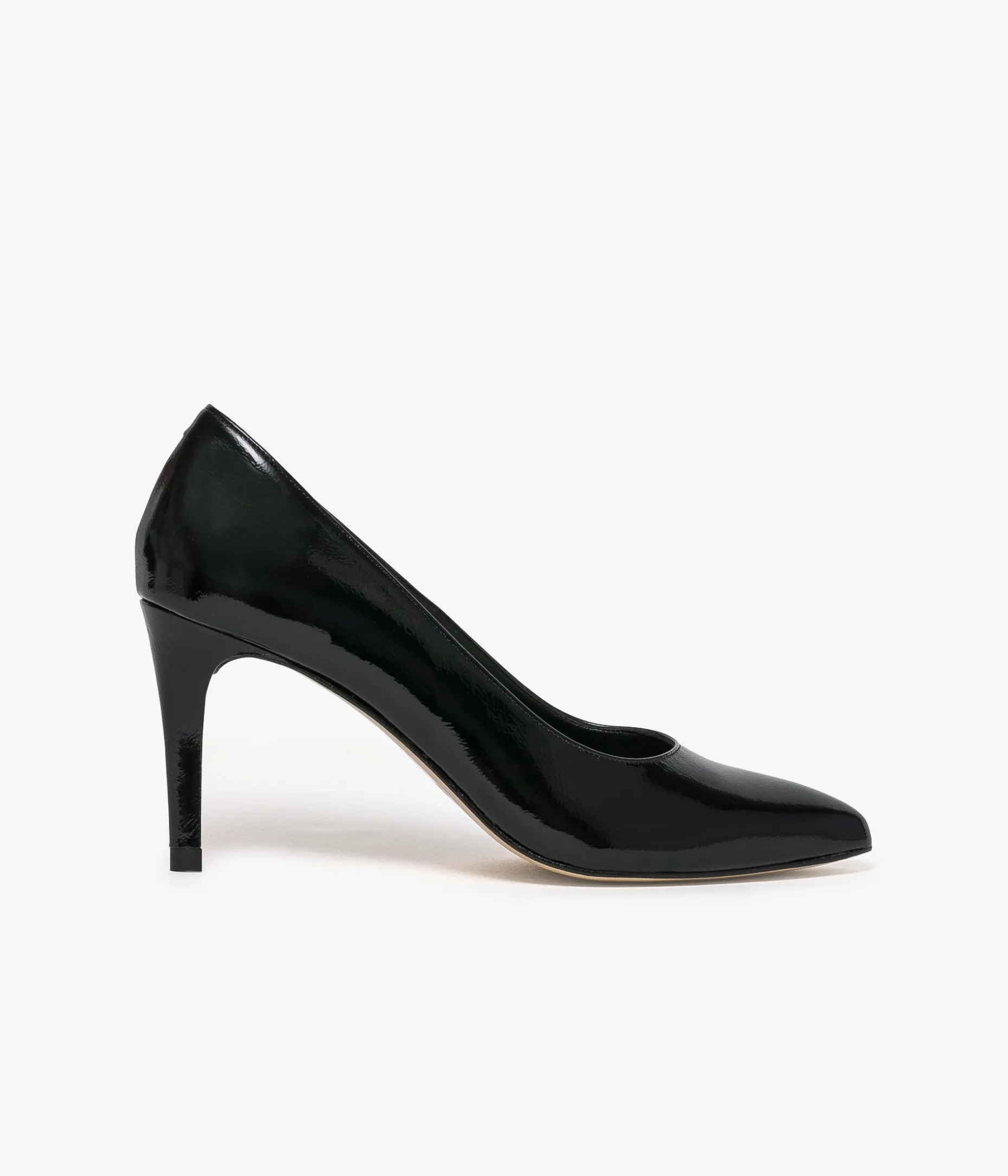 Un escarpin noir en cuir verni fabriqué avec soin au Portugal. Sa silhouette effilée avec bout pointu lui confère une élégance particulière. Il repose sur une semelle fine et un talon enrobé contemporain de 8,5 cm. Cet escarpin à talon sublimera les tenues de soirée comme tenues du quotidien. Un essentiel du vestiaire féminin, entièrement doublé cuir avec semelle intérieure cuir dotée d’une fine mousse.