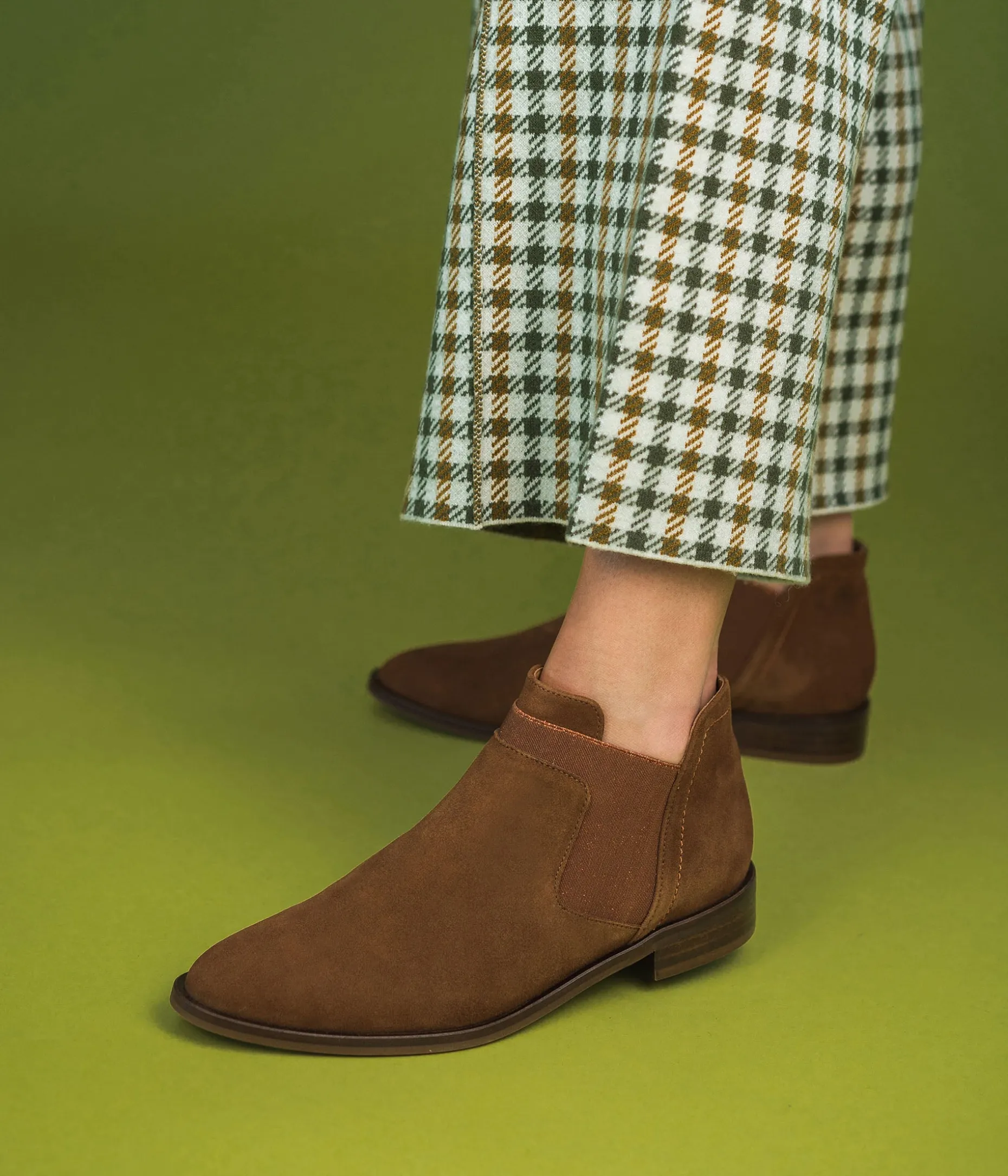 Un low-boots cognac en cuir velours fabriqué avec soin dans notre propre atelier en France, au cœur du Maine et Loire (49). Cette chaussure assure élégance et confort avec son bout amande et sa large bande élastique pailletée sur l’avant inspirée des Chelsea. Une chaussure entièrement doublée cuir avec semelle intérieure cuir dotée d’une fine mousse. Elle repose sur une semelle fine avec trépointe cuir et large talon lamellé collé. Notre technologie Bocage Innovation vous garantit un bien-être inégalé. La semelle dissimule des élastiques qui permettent à votre chaussure de s’adapter à votre pied.