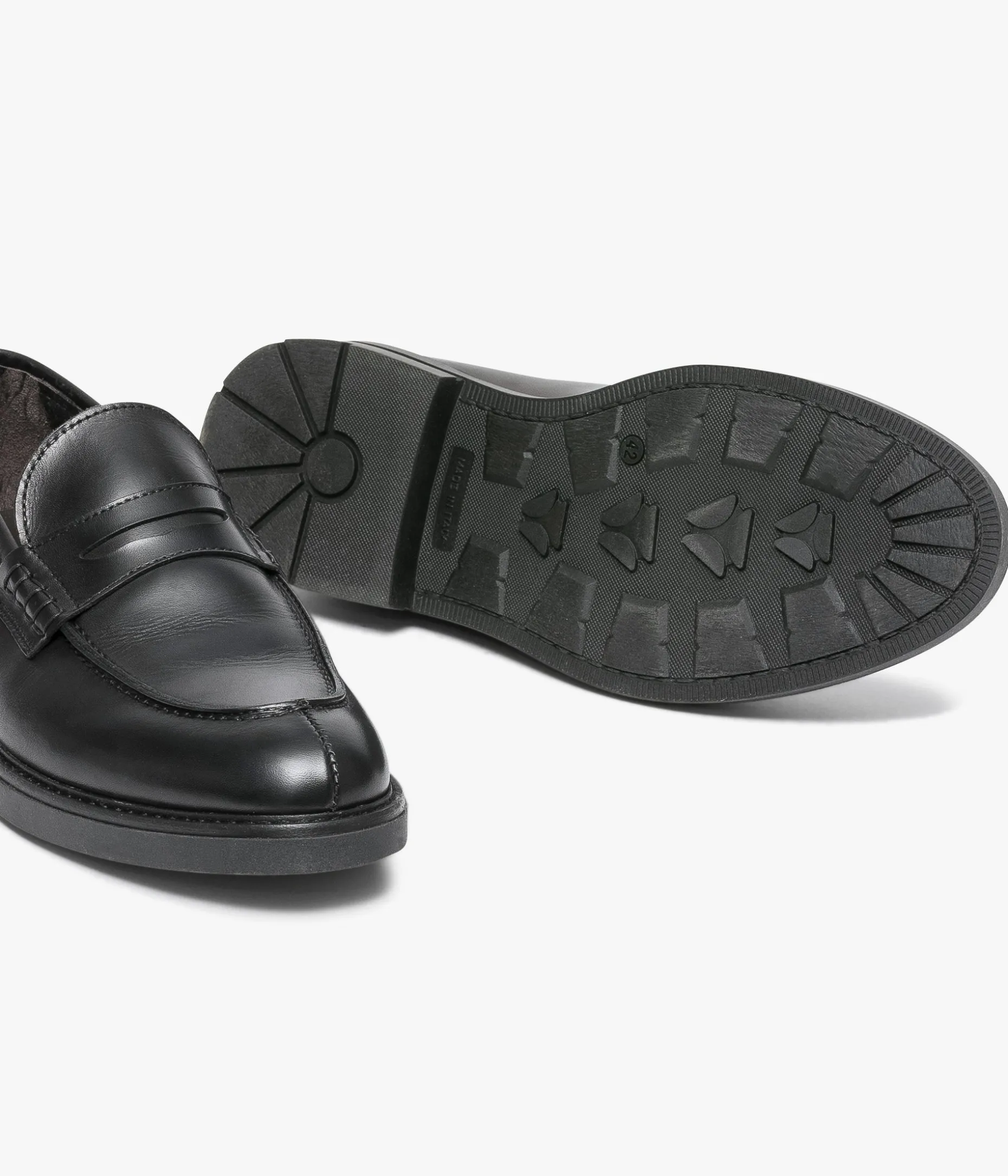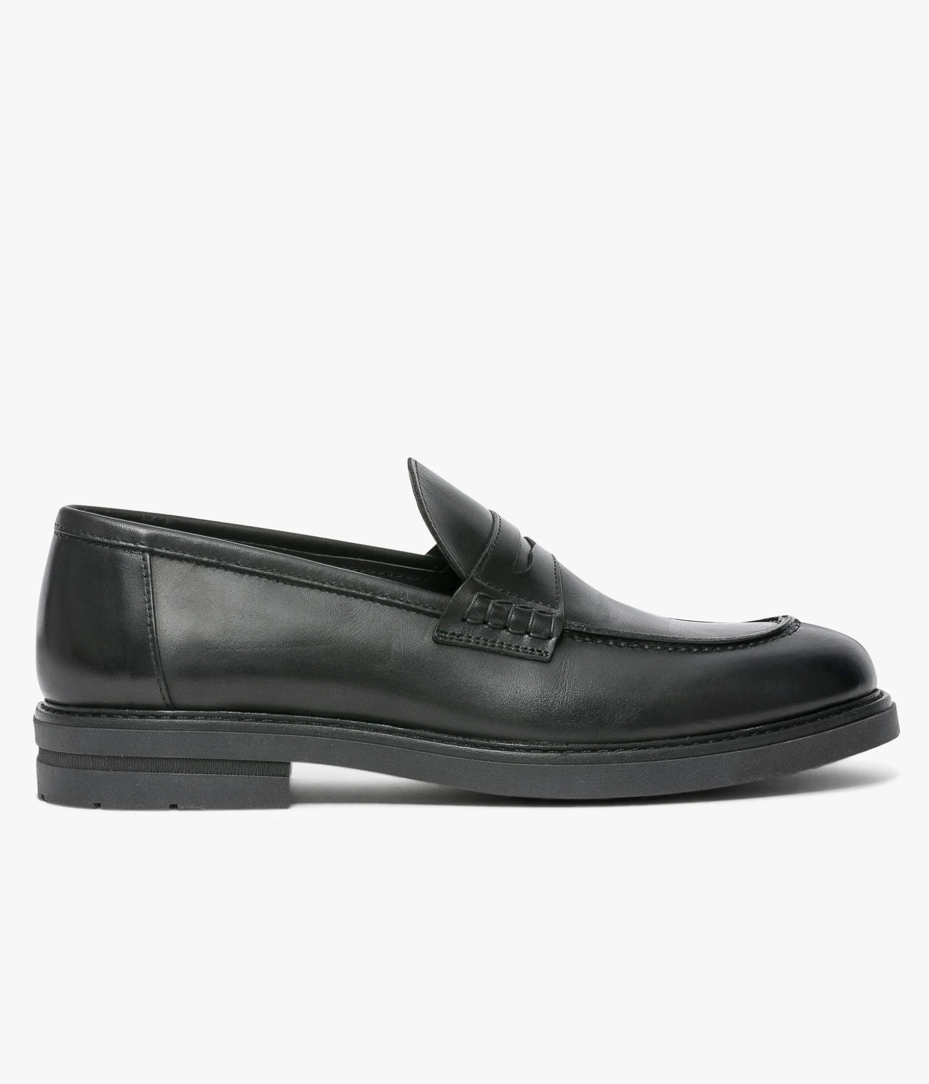 Un mocassin noir en cuir lisse fabriqué avec soin dans notre atelier en Italie. Une chaussure masculine au look indémodable avec surpiqure en relief sur le dessus et bandeau perforé avec points sellier. Ce mocassin repose sur une épaisse semelle légère avec trépointe piquée, qui lui donne une allure contemporaine et décontractée. Une chaussure entièrement doublée cuir avec semelle intérieure cuir dotée d’une fine mousse.