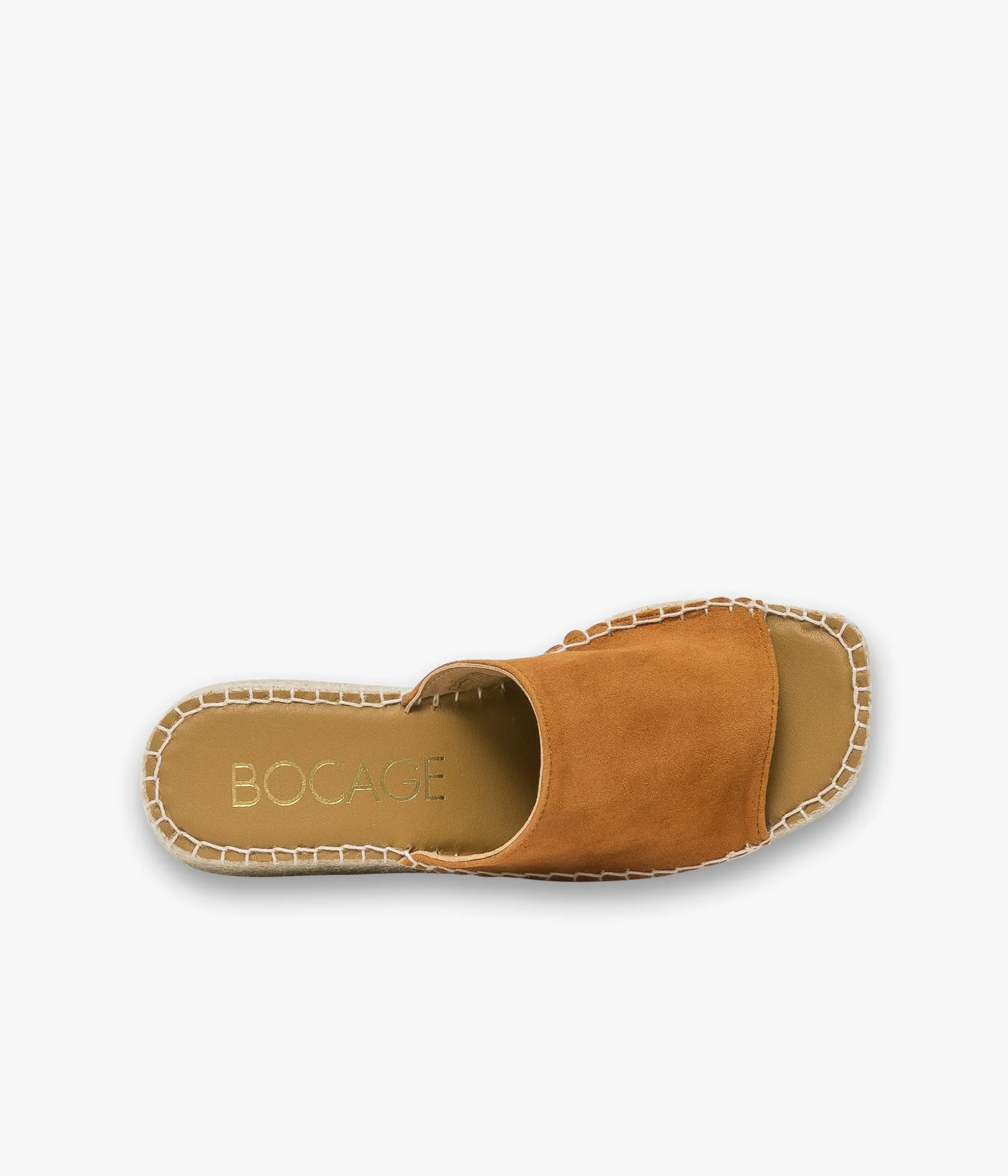 Une mule en cuir velours cognac fabriquée avec soin en Espagne. Cette mule à talon compensé enveloppe parfaitement le pied grâce à sa large bride sur le dessus, dotée d’un élastique d’aisance sur le côté interne. Elle repose sur une épaisse semelle plateforme enrobée de corde avec piqûre artisanale prenant à la fois la semelle intérieure et le dessus. Une chaussure doublée cuir avec semelle intérieure cuir moussée très confortable. Semelle 3 cm.