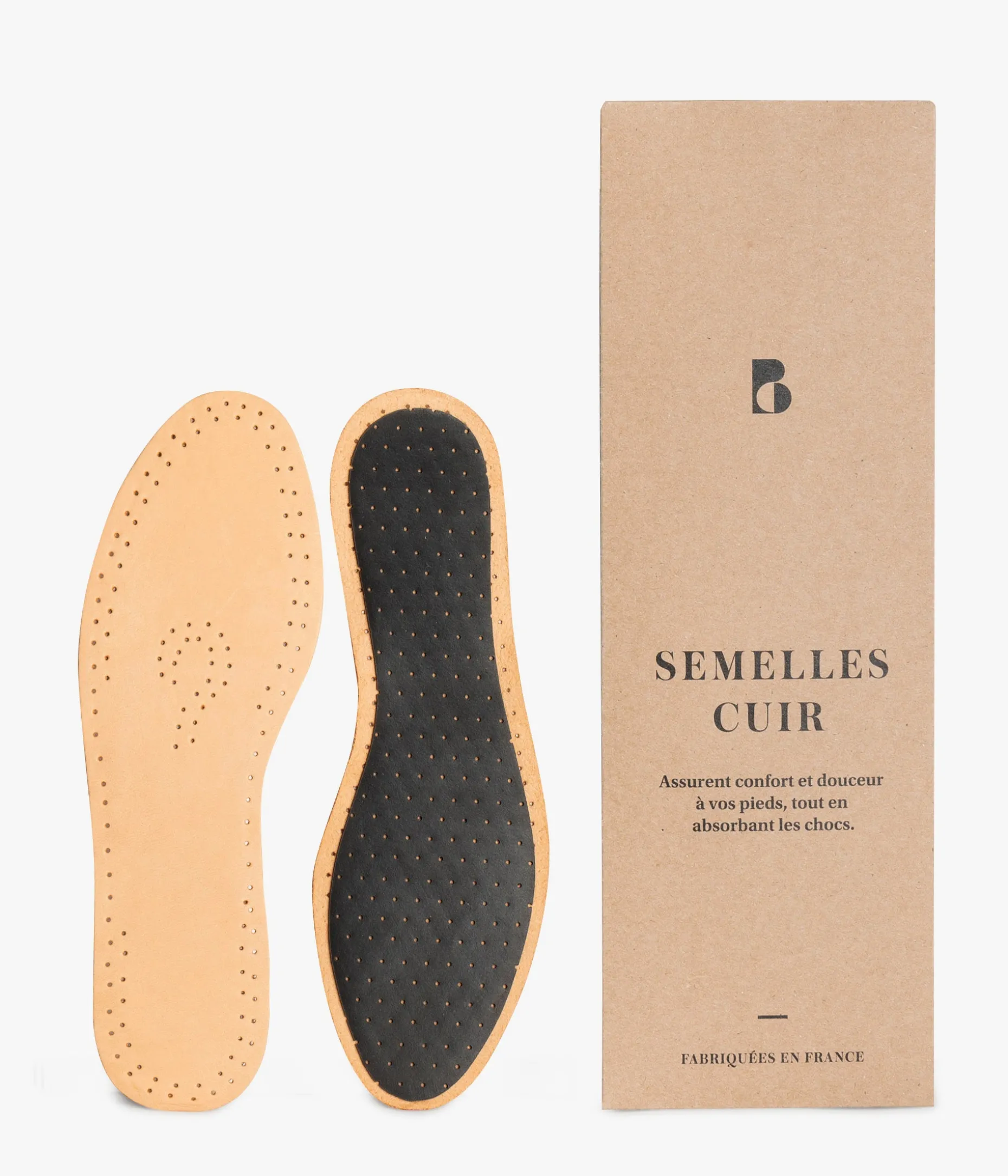 Ces semelles sont confectionnées en cuir d'agneau naturel de haute qualité avec sous-couche en latex au charbon actif. Leur composition permet d’absorption de l’humidité et l'amortissement des chocs. Elles vous assurent une agréable sensation de confort tout au long de la journée. Semelles fabriquées en France.